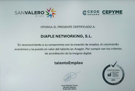 Hoy hemos recibido la insignia Talento Empleo de Grupo San Valero, CEOE Aragón Y CEPYME Aragón.